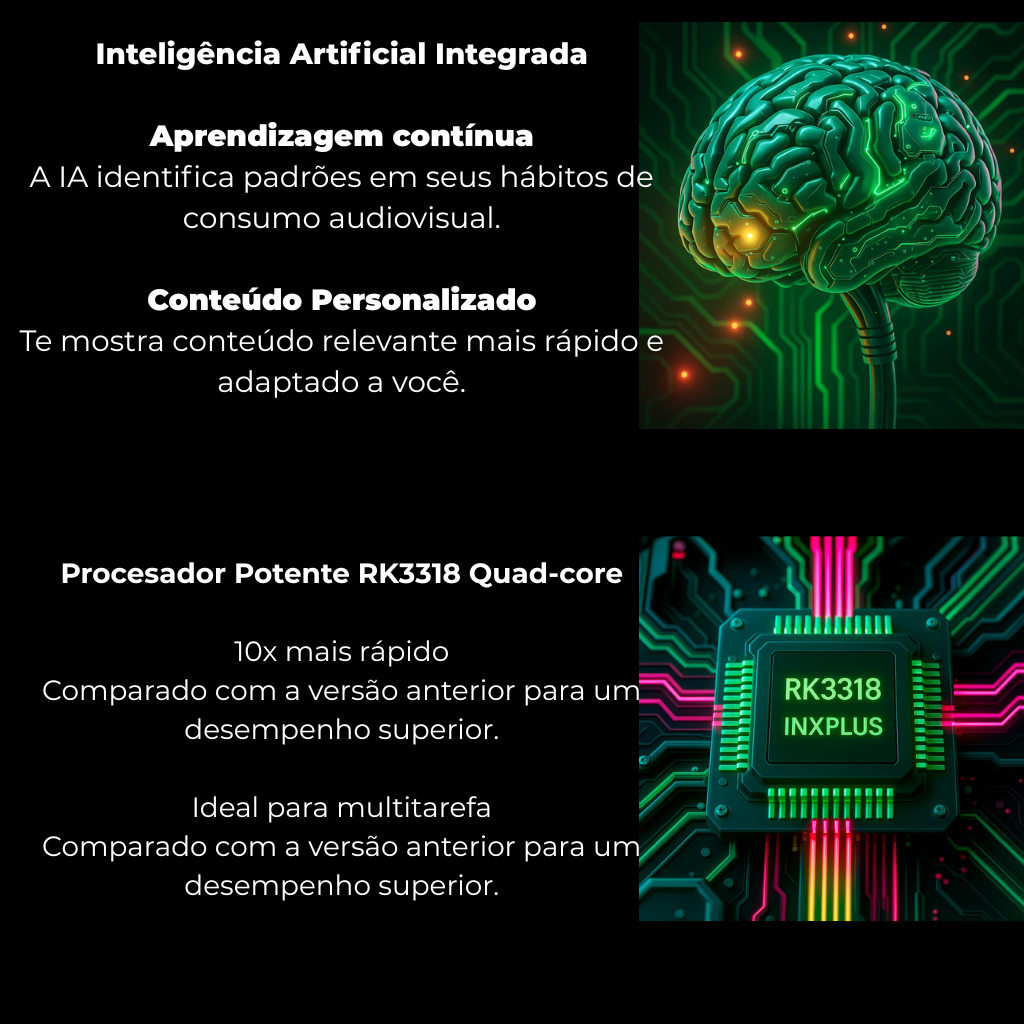 CPU: RK3318 Quad-core Cortex-A53 (10x mais rapido que a vesao anterior)