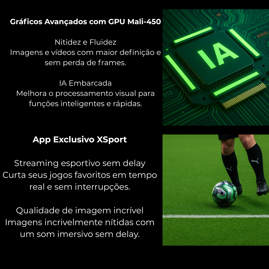 GPU: Mali-450 (nova geraçao - substirui a Mali-400, com desempenho grafico superior)